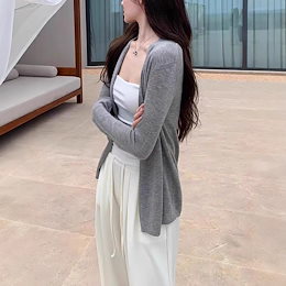 time sale長袖の薄手デザインやや透け感のある中丈から長丈のトップス日焼け防止用のオーバーコートとして着用できる女性用の春夏のニットカーディガン