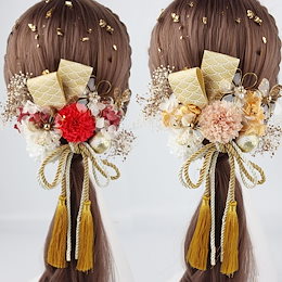 time sale和風成人式 ドライフラワー風和風スタイル クリスタルフラワー 髪飾り プラチナ 紅金色の振袖卒業式髪飾り