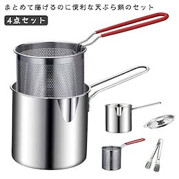 揚げ物 直火対応 ミニ フライパン 天ぷら鍋 IH対応 送 料 無 料 多機能 鍋 油切りざる付き 4点セット トング付き 蓋付き 304ステンレス鋼 深型 揚げ物用 非塗装 IH 直火対応 調理器具