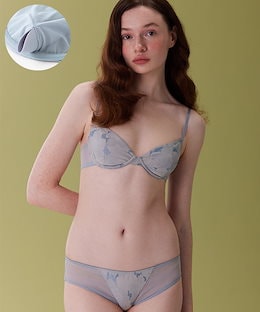 パッドなし レース ブラジャー フラワー 3/4カップ ランジェリー ワイヤー ワイヤー入りブラ [2カラー]