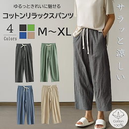 メンズ リラックスパンツ イージーパンツ 綿100% コットン ルームパンツ ルームウェア ホームウェア 部屋着 長ズボン シンプル 無地 涼しい 涼感 ウエストゴム ゆったり 大きいサイズ 春夏秋