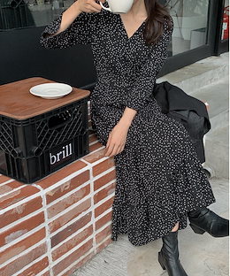 time saleロングワンピース 4選 ドット マキシ丈 七分袖 プリント・柄ワンピ [4タイプ]