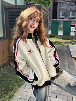 2025秋冬 韓国風 2type 裹起毛 かわいい レディース ハイネックスタンドネックアウター ブルゾンお出かけ黑長袖シルエットトップスサイドカジュアルファッション系ベースボールサイズフルトラック