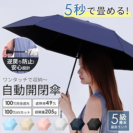 【5秒でたためる】日傘 軽量 完全遮光 遮熱-15℃ 形状記憶 UVカット100% ワンタッチ自動開閉 コンパクト 6本骨 5級撥水 日焼け防止 無地 折りたたみ晴雨兼用