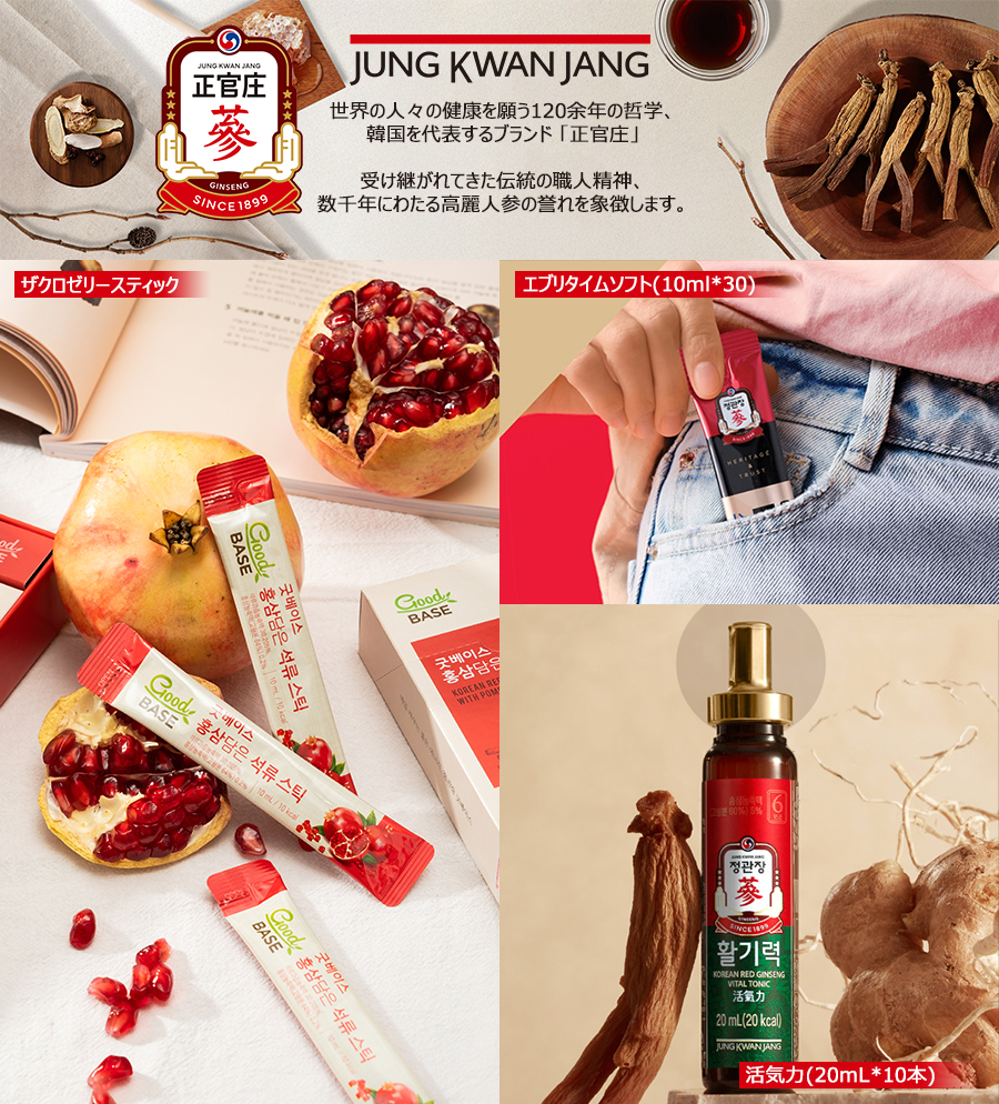 【正官庄韓国公式】GoodBASE 紅参ザクロ(50mL*30包) 正官庄(ジョンガンジャン)紅参(ホンサム)高麗人参 コラーゲン