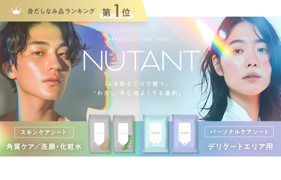 【10枚6パック!】【NUTANT】【デリケートゾーン / 顔 / 全身用】トイレに流せるウェットシート パーソナルケア (無香料 / ホワイトムスク) 大判シート(25×20cm) 無添加 日本製