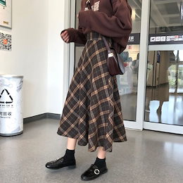 ロングスカート レディース 大きいサイズ チェック柄 ハイウエストスカート フレアスカート ミモレ丈 フリンジ 大人 上品 おしゃれ きれいめ かわいい カジュアル ファッション ママコーデ