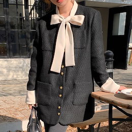 秋冬 ガーリートップス 可愛いジャケット 人気アウター ツイードジャケット