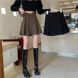 レディース ミニスカート プリーツスカート Aライン ダブルブレスト ビスチェ風 ハイウエスト 美脚見せ 小さいサイズ 春新作 韓国ファッション おしゃれ 人気アイテム
