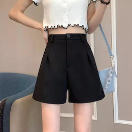 レディース ショートパンツ ハイウエスト ワイドシルエット 脚長効果 着痩せ 夏服 カジュアル スラックス風 韓国風 おしゃれ レディースボトムス
