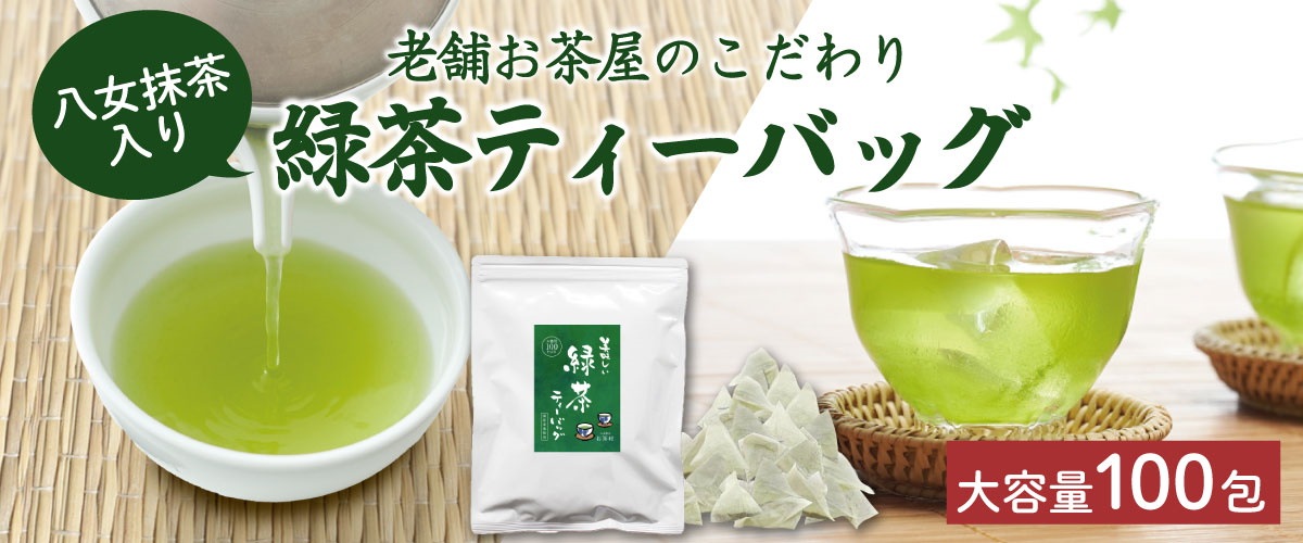 100包 緑茶ティーバッグ(八女抹茶入り)緑茶 日本茶 八女 100個 大容量 高級 無添加 個包装 業務用 抹茶入り 抹茶 ティーパック ティーバッグ お茶村
