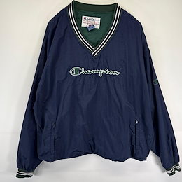 古着 ジャケット プルオーバー ワンポイントロゴ刺繍 Vネック L ネイビー メンズ