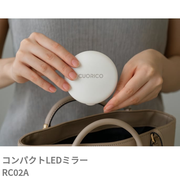 【クオリコ公式】 LEDミラー RC02A コンパクト 薄い 化粧鏡 標準 5倍拡大 明るい 3色 段階調光 USB充電 消し忘れ防止 取扱説明書付き クオリコ RiCORE(リコレ)