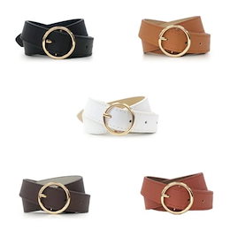 ラウンドバックルベルト レディース ベルト 細め おしゃれ かわいい シンプル ホワイト ブラック ダーク ブラウン キャメル 金 リング デザイン ファッション 小物 アクセサリー サイズ フリー
