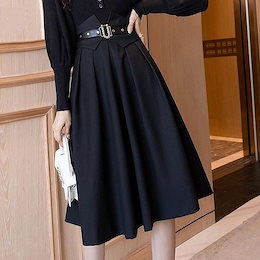 2025 人气 秋 新作 ミディアムスカート ブレザースカート 垂下感 スカート じゅんしょく ワンチップ やせて見える 韓国ファッション