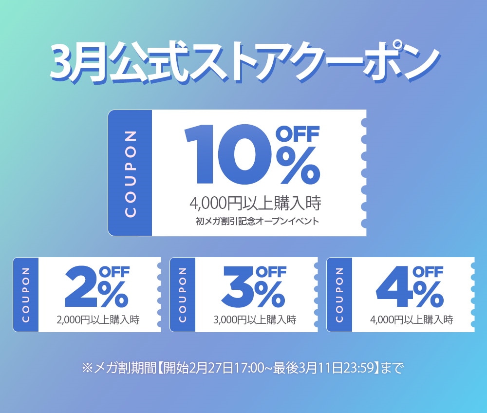 4,000円以上購入で使用可能2026.02.25 00:00~2026.03.11 23:59
