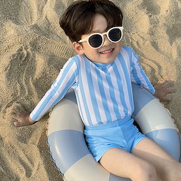 子供用水着 韓国風 3色ストライプ 長袖 紫外線防止 速乾 夏用水着