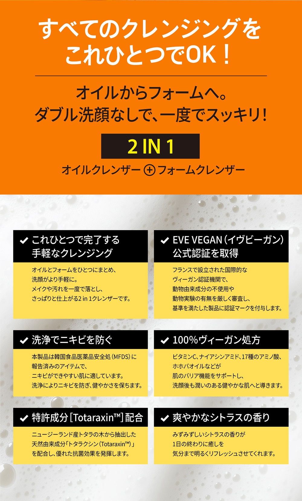 【ベオロ クレンザー】【公式正品】【ブライトニング オイル トゥ フォーム クレンザー ビタミンC】 クレンジングオイル ニキビ ニキビ肌 ニキビケア 洗顔 クレンジング メイク落とし ダブル洗顔不要