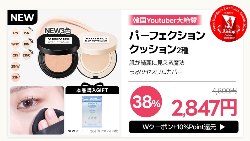 【VIDIVICIイチオシ】ギフト付/クッションファンデ/新発売/スキンケア/べ―スセット/日焼け止め/韓国コスメ/カズハ/クッション/うるおい/メガポギ限定