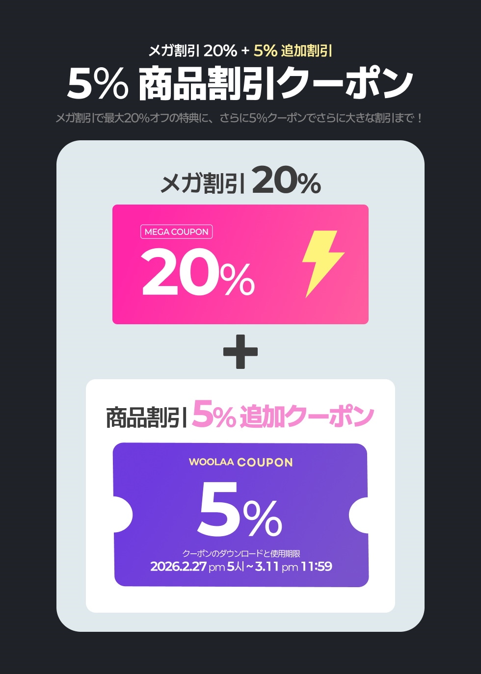 ✨メガ割引 5% 追加割引 COUPON ✨