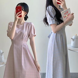 夏半袖ワンピースレディースワンピース夏サマーワンピーススクエアネックミモレワンピースバルーンスリーブ無地ロングワンピレトロファッションドレスレディース夏季新品