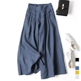綿麻ワイドパンツ 美脚 ガウチョパンツ