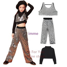 キッズダンス衣装 子供 ダンスパンツ へそ出し パーカー ダンクトップ 長ズボン ジャズ ダンス H