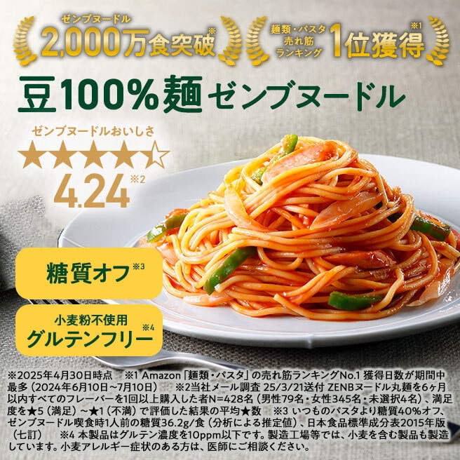 ヒルナンデスで紹介【糖質オフの豆100%麺】ZENB ゼンブ ヌードル 丸麺 48食(12袋) /パスタ グルテンフリー 糖質制限 置き換え 小麦粉不使用 プロテイン 食物繊維 ダイエット中の栄養補給